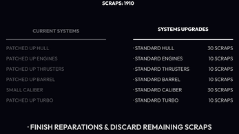 Start with a patched-up, damaged spacecraft. Down all the enemies you can to get scraps you can use to upgrade your next spacecraft !